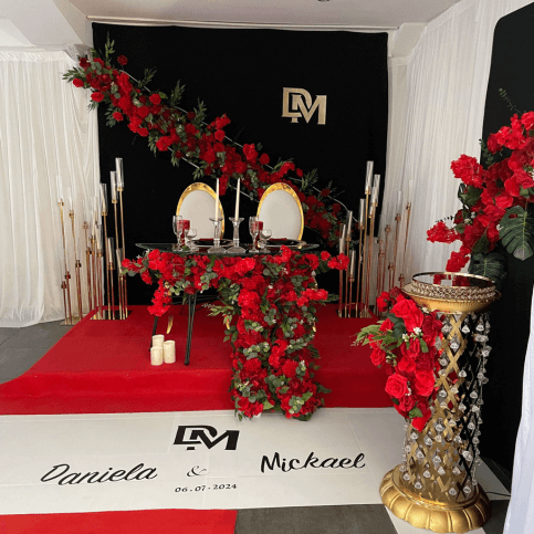Que ce soit dans un style classique, bohème ou contemporain, nous faisons tout notre possible pour concrétiser votre vision. Chaque élément de la décoration de votre salle de mariage, qu’il s’agisse de couleurs ou de textures, d’arrangements floraux ou d’éclairage, est spécialement conçu pour instaurer l’ambiance idéale.